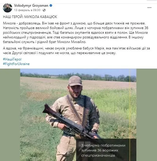 А еще, в дни, когда Гройсман за границей, он любит выставлять сообщения об украинских бойцах - что-то в стиле "герои среди нас". Так и хочется сказать: герои действительно среди нас, а вы где, Владимир Борисович?