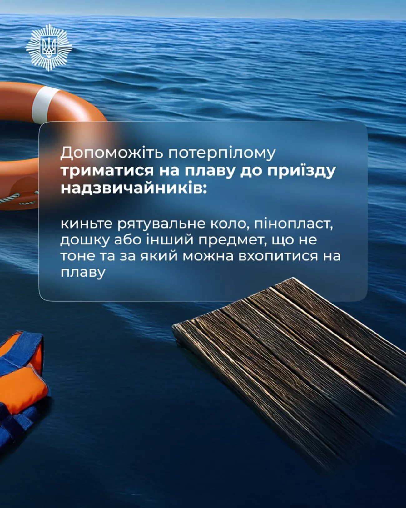Помогите пострадавшему держаться на плаву до приезда чрезвычайников: бросьте спасательный круг, пенопласт, доску или другой предмет, который не тонет и за который можно ухватиться на плаву.