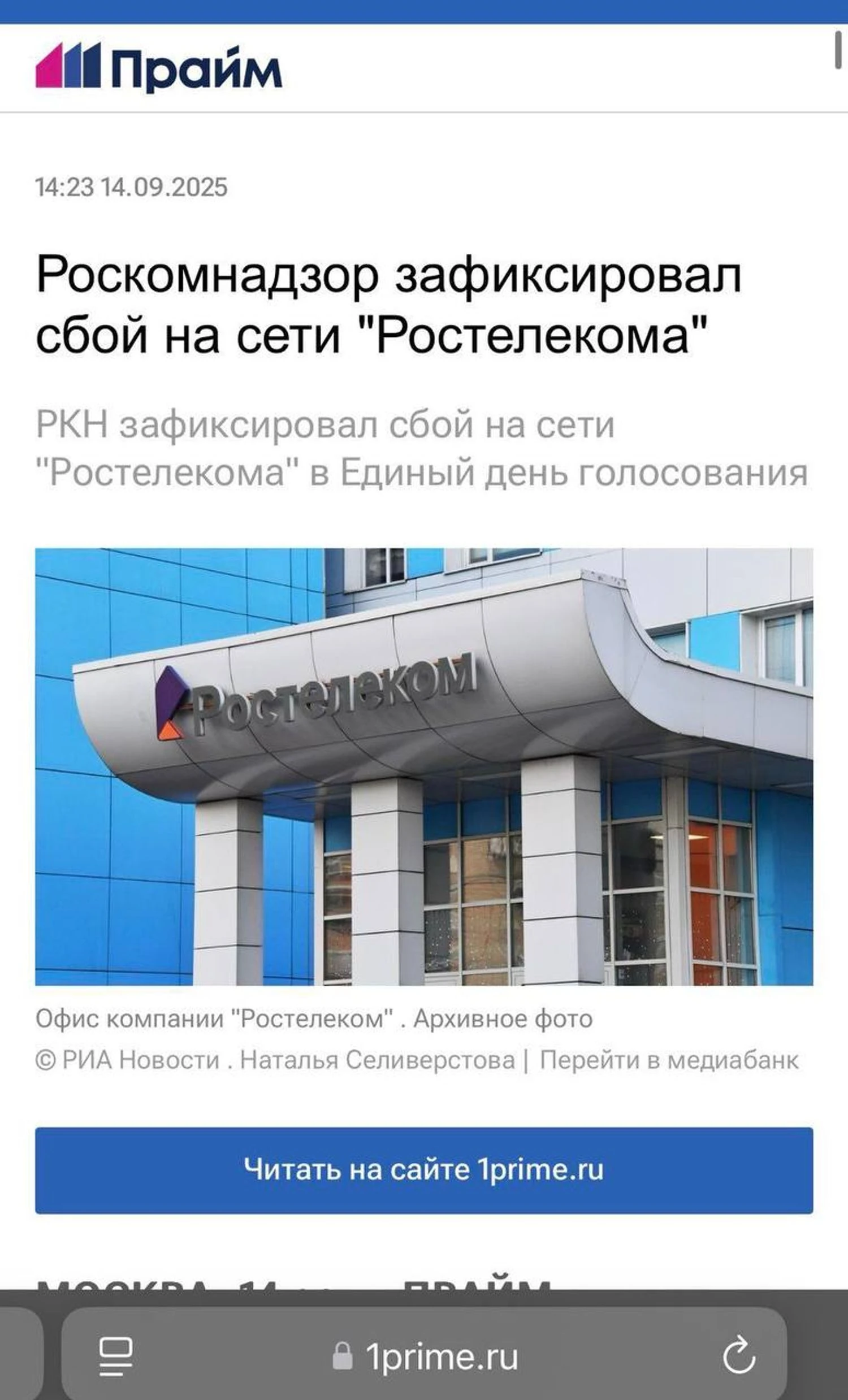 О проблемах с работой сервисов для дистанционного голосования подтвердили и в Роскомнадзоре. По их данным, "из-за сбоев в сети Ростелекома произошла деградация трафика на магистральной сети".