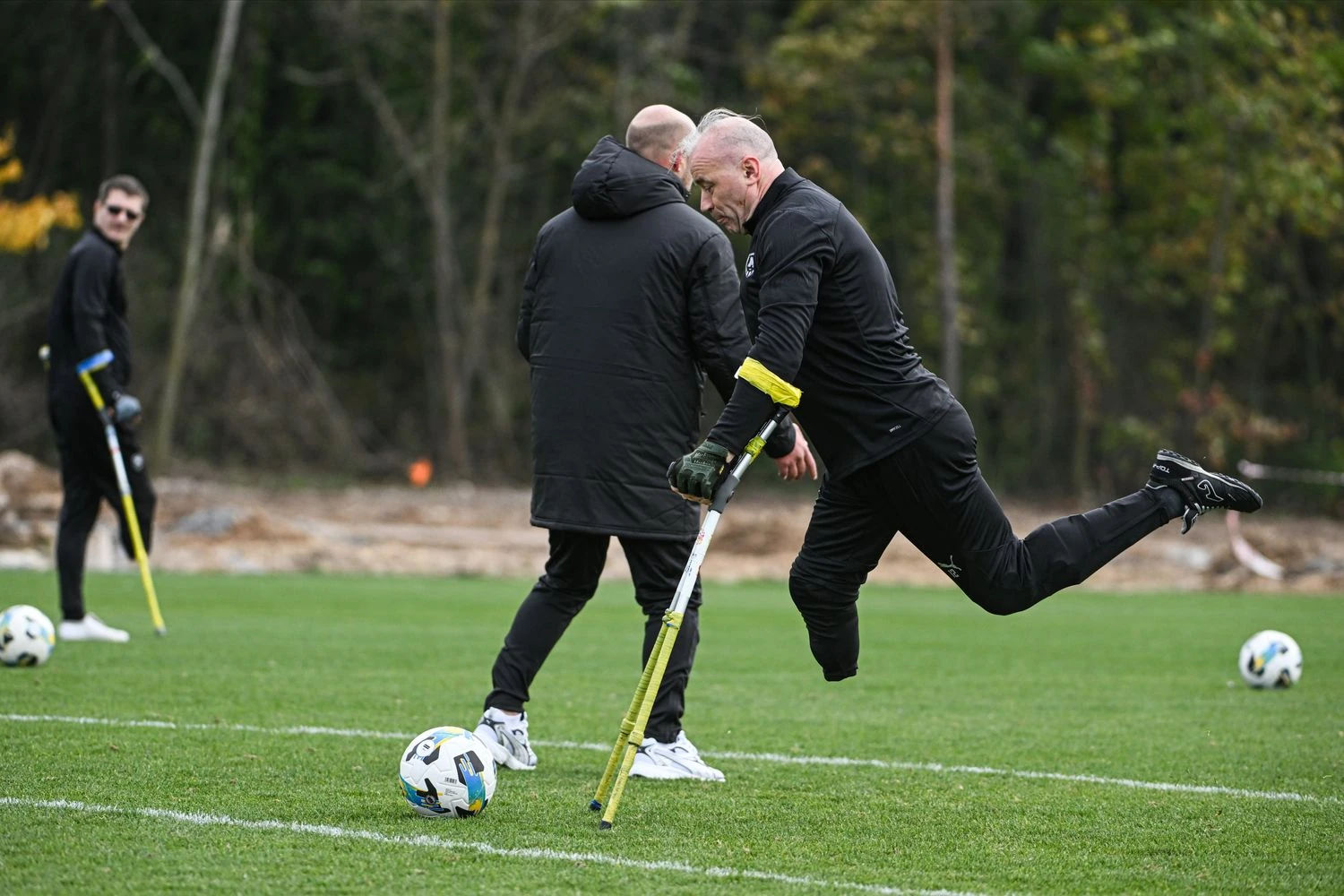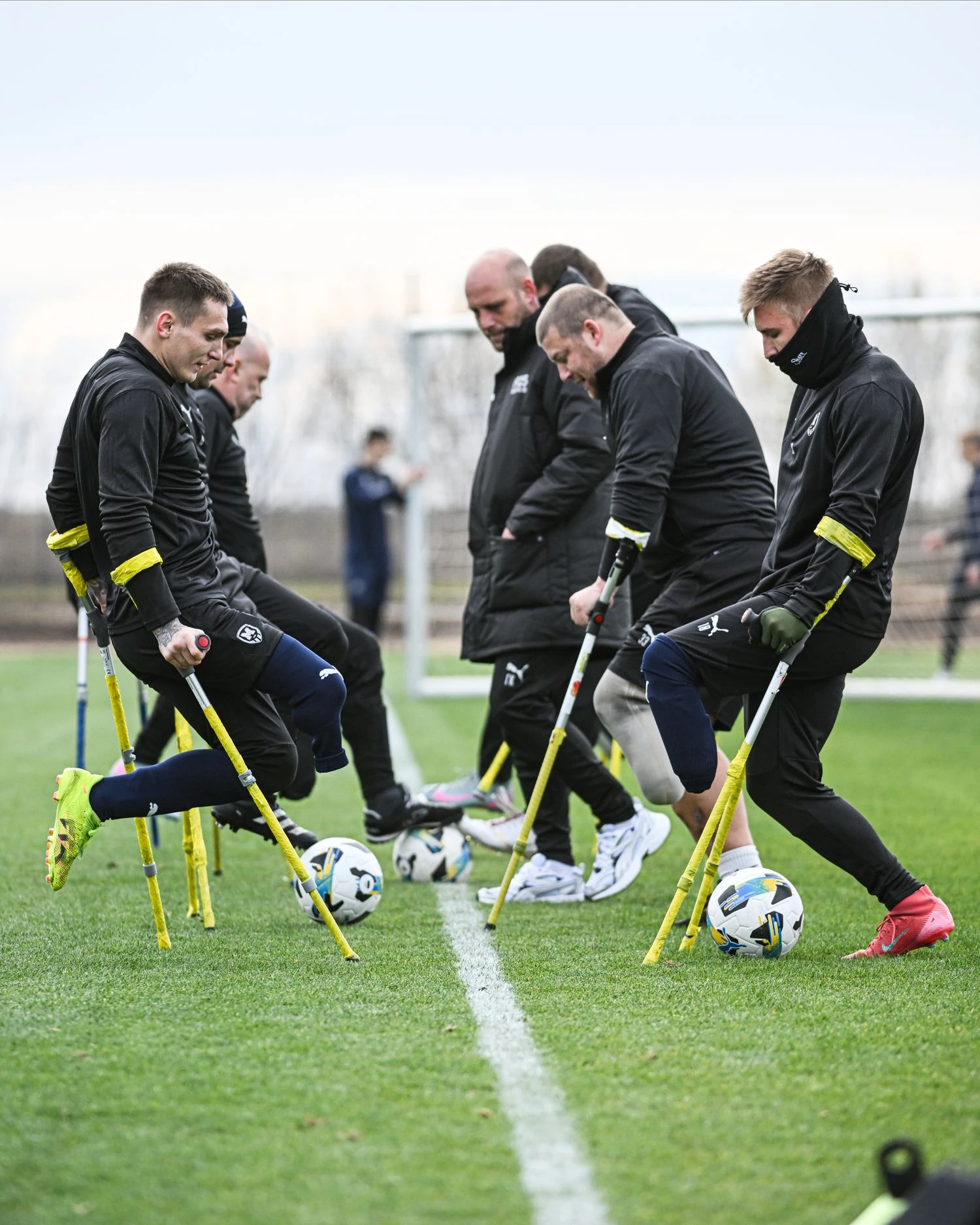 Знакомство двух команд завершилось первой параллельной тренировкой. Пока основной состав ФК "Металлист 1925" работал по своей программе, на соседнем поле АМП ФК "Металлист 1925 Незламні", демонстрируя невероятную силу рук и филигранный баланс, доказали не словом, а делом, что футбол, несмотря на любые ограничения – един для всех.