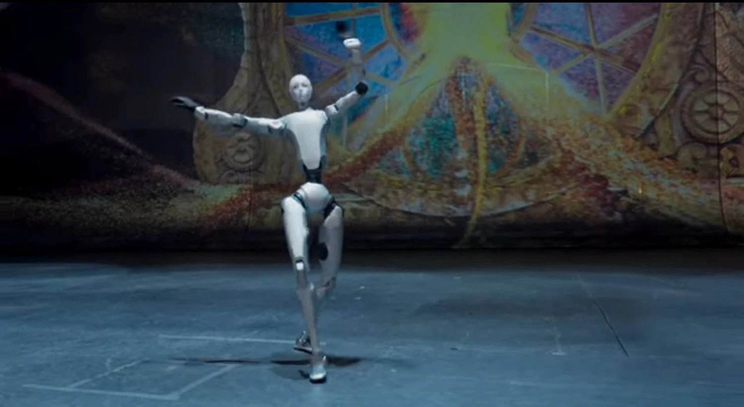 Робот выполняет сложные танцевальные и боевые движения, демонстрируя естественную гибкость суставов и мягкие переходы между позами.