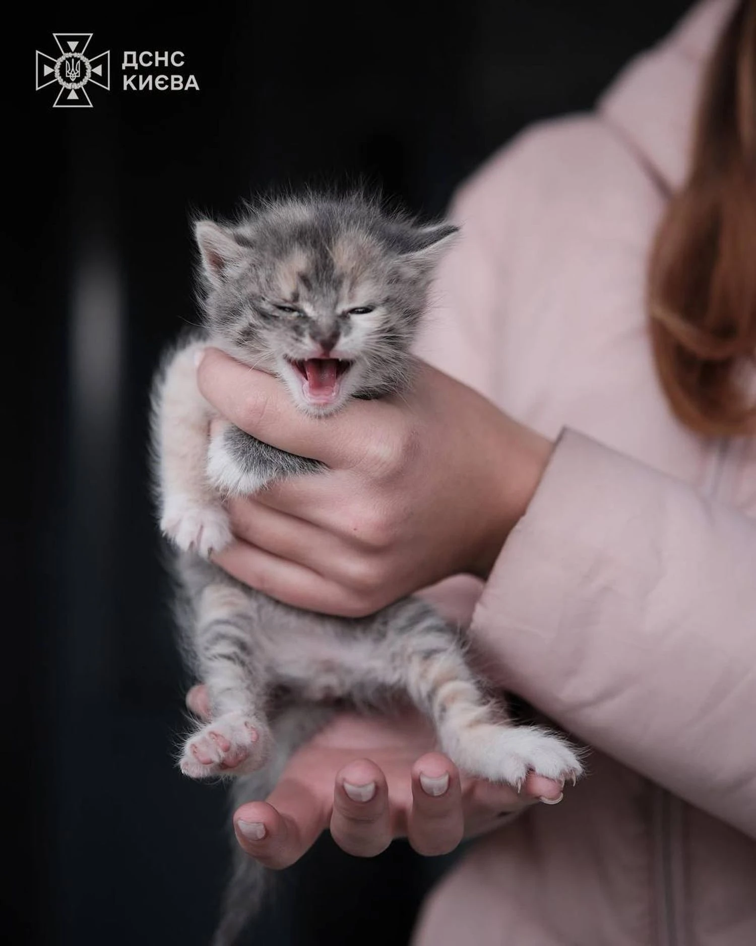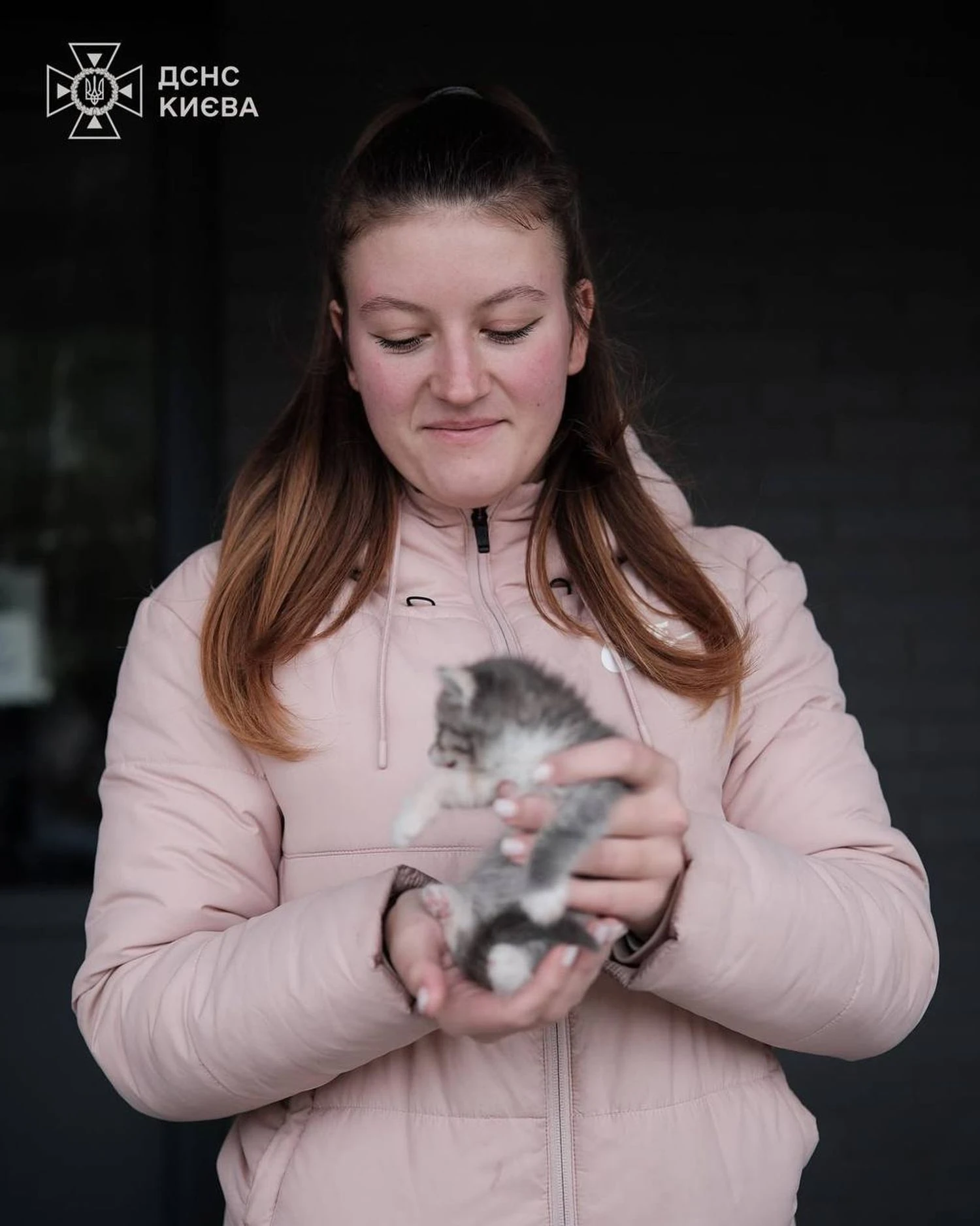 Киевские спасатели нашли дома трем котятам, спасенным с места российского удара