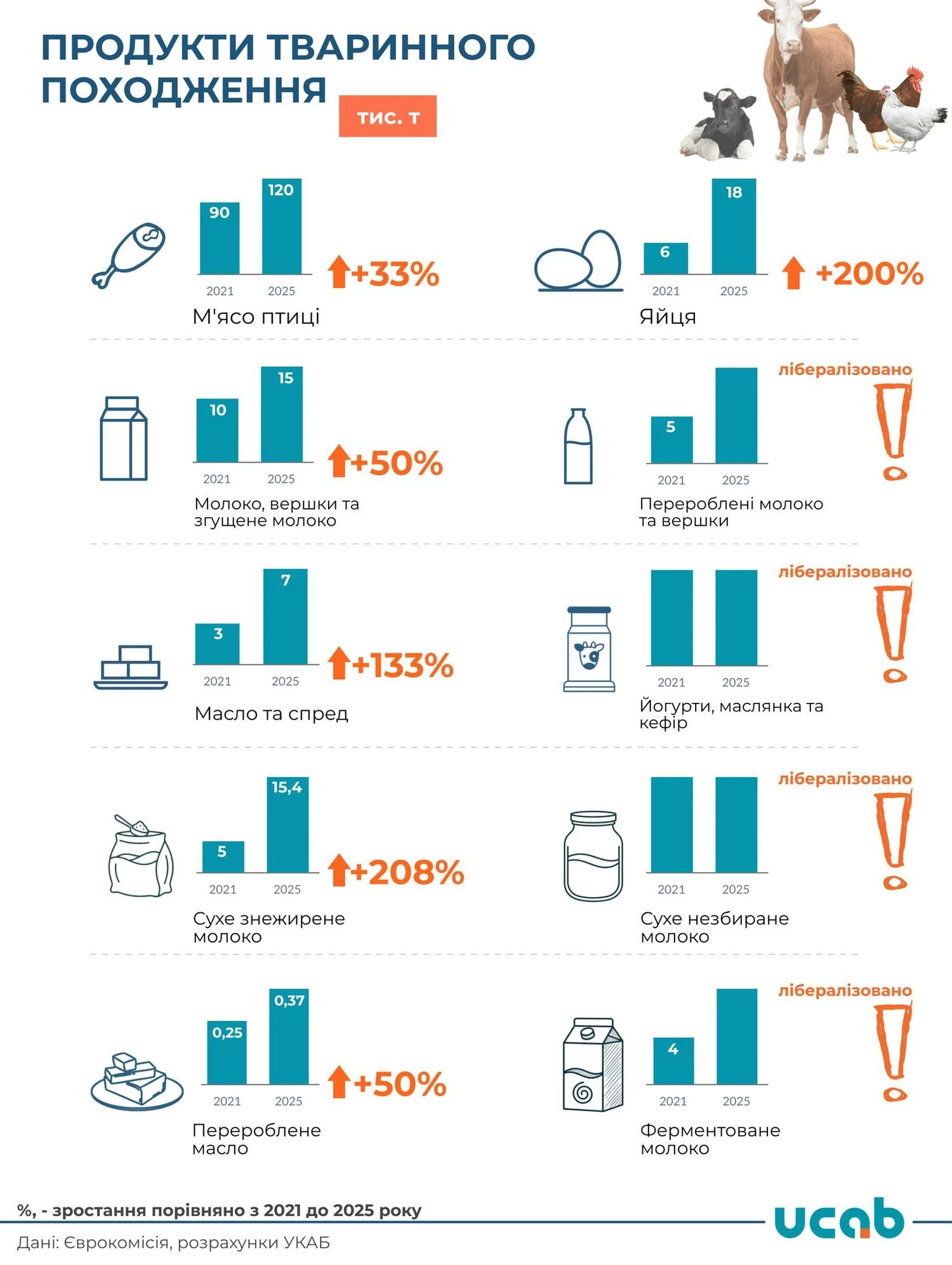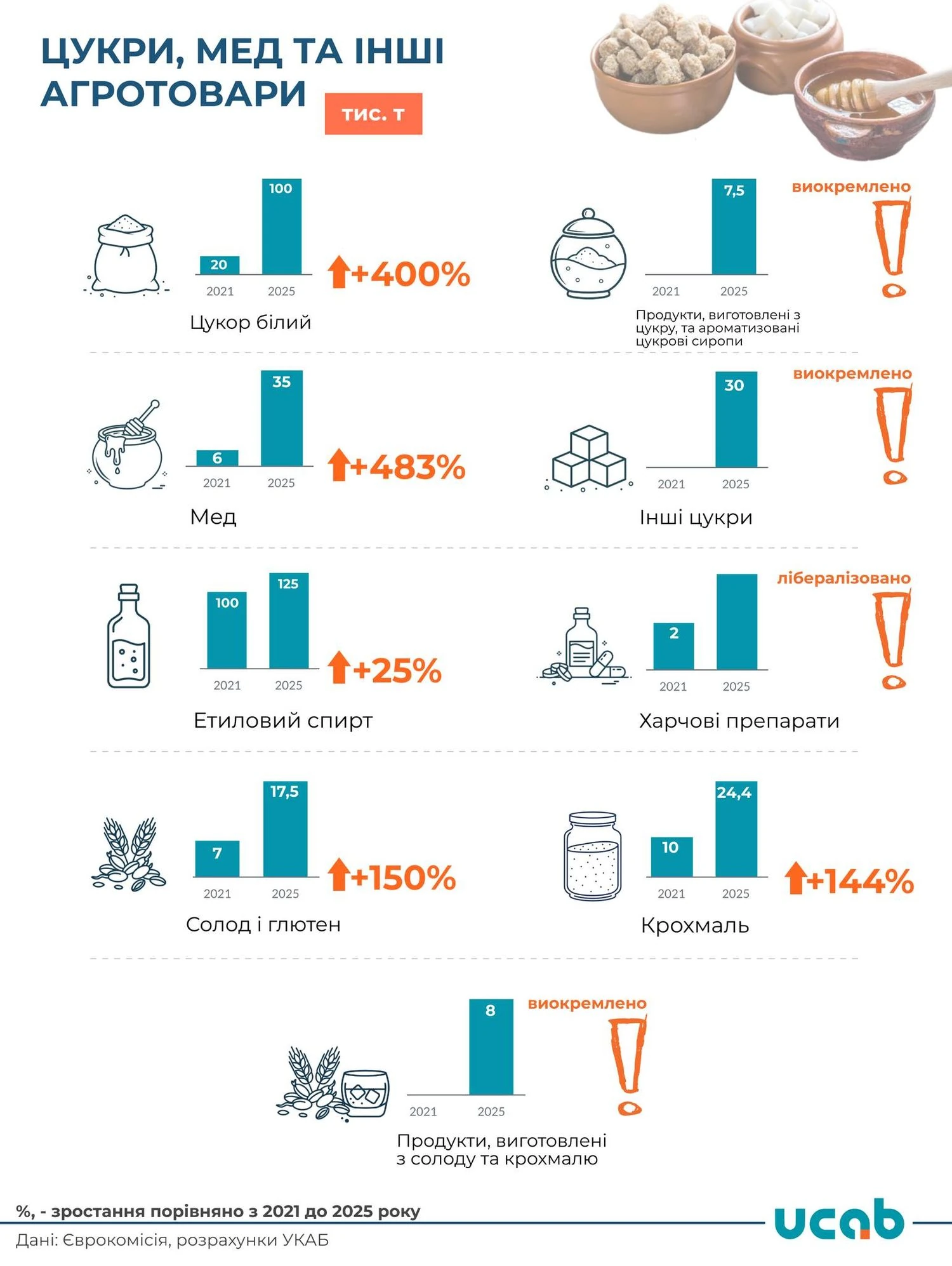 Поскольку обновленная договоренность учитывает интересы обеих сторон, то со своей стороны Украина, по данным УКАБ, также увеличит объемы квот для европейских товаров, в частности на свинину (с 20 000 до 45 000 тонн), мясо птицы (с 20 000 до 120 000 тонн) и сахар (с 40 000 до 100 000 тонн). Это будет способствовать углублению взаимных торговых отношений.