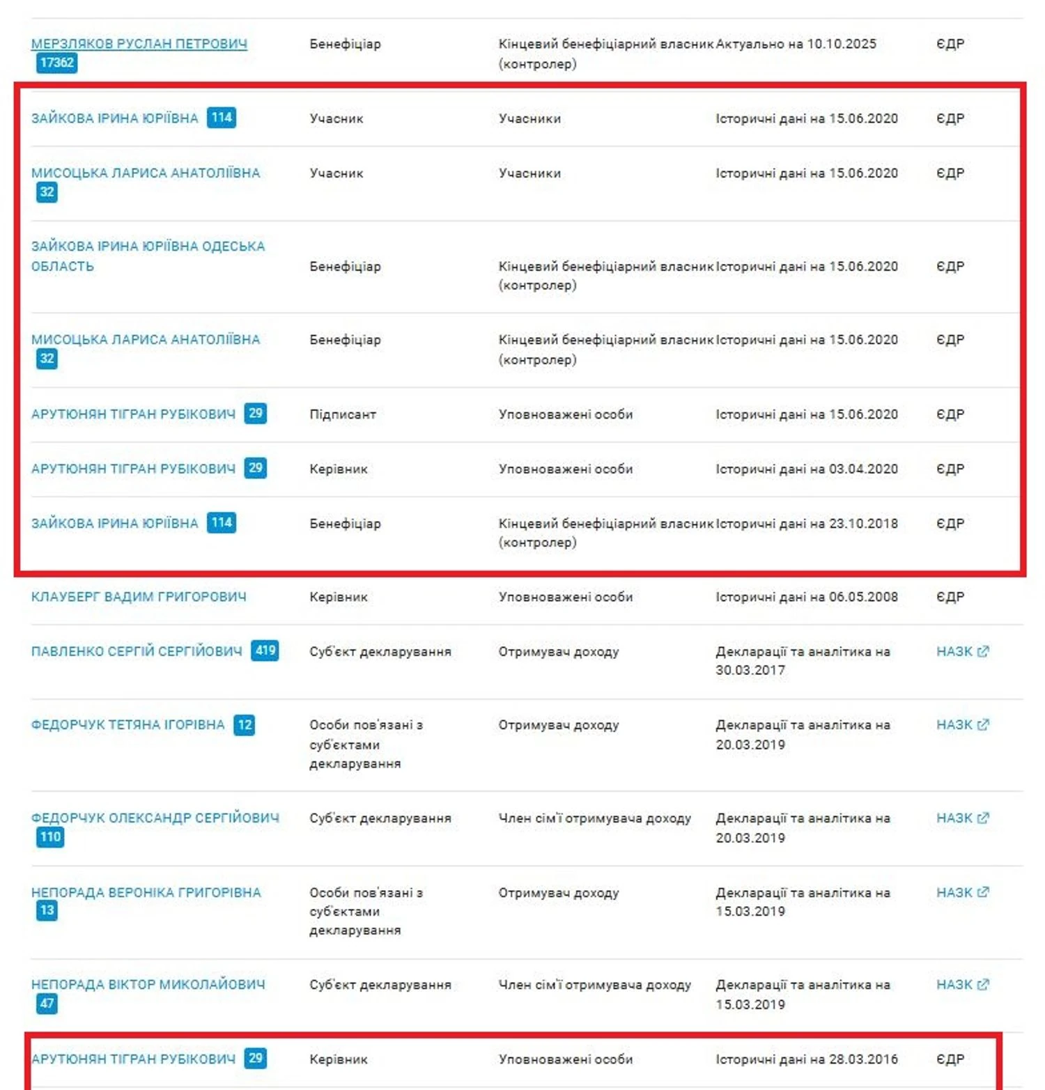 В открытых источниках мы обнаружили почти 2 тысячи (!) компаний, к которым имеет или имел отношение Руслан Мерзляков (зарегистрированный по одному и тому же адресу в Донецке, что подтверждает, что все это одно лицо) как руководитель или совладелец. Профили деятельности у юрлиц разные: это и юридические фирмы, торговые и строительные компании, рекламные агентства и бизнес-центр и т.д. Возникает логичный вопрос: Руслан Мерзляков – настолько мощный бизнесмен или просто фунт?