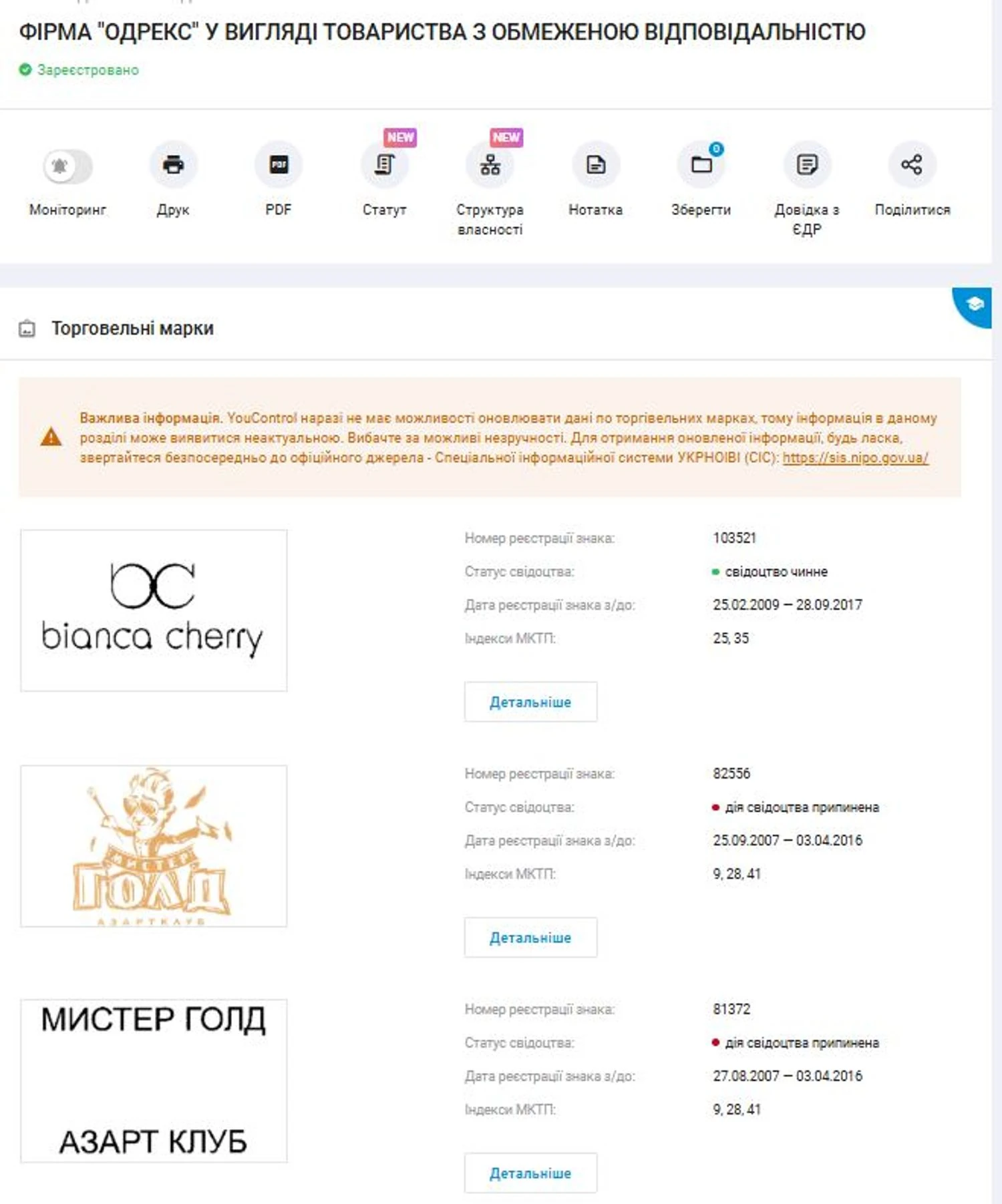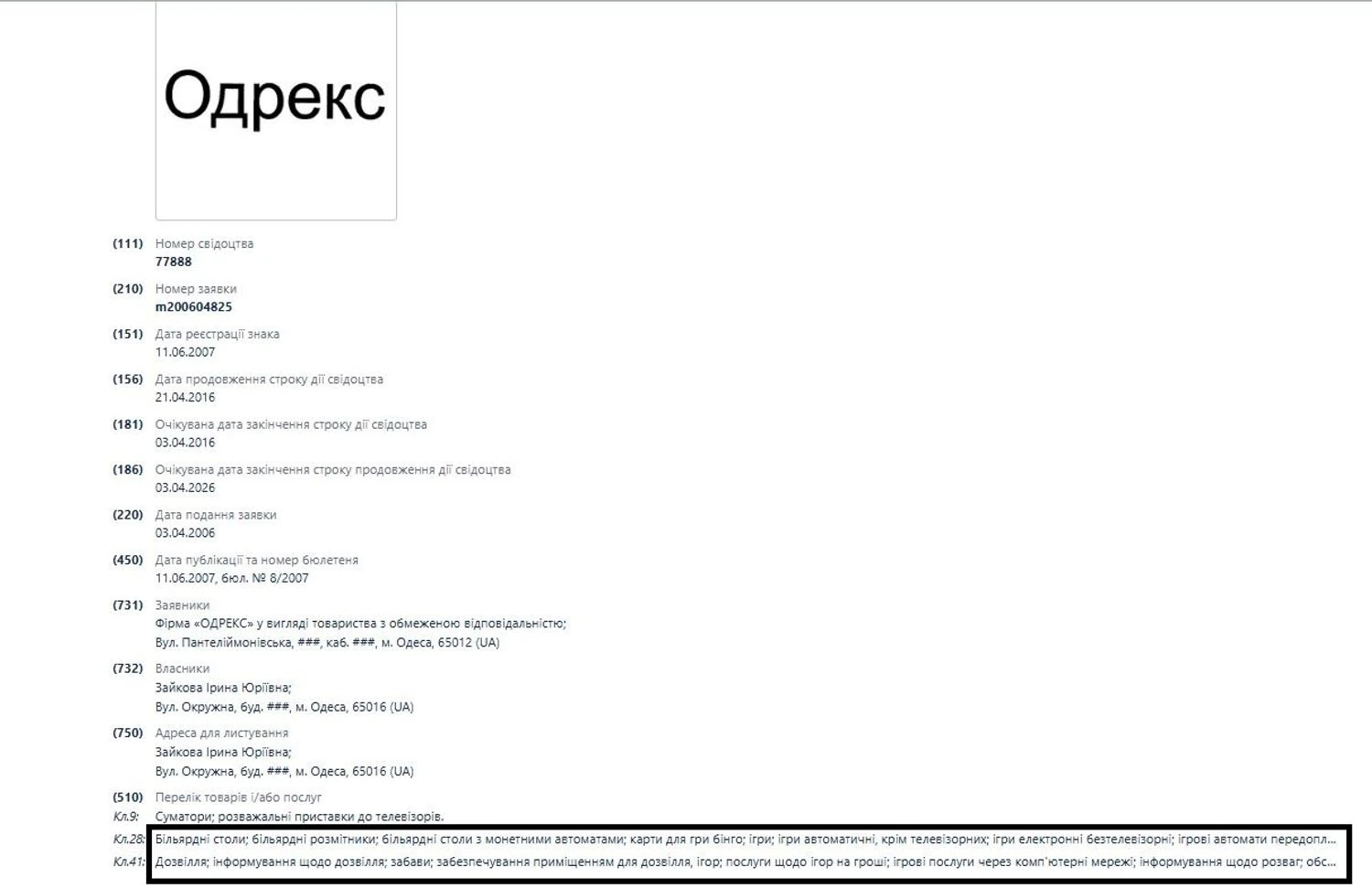 Признаки того, что изложенные в статье факты имели место, мы находим и сейчас в открытых реестрах. Так, например, Зайкова была совладелицей "Невады" (которая и до сих пор зарегистрирована на Раскидайловской), фирма "Одрекс" является соучредителем Ассоциации деятелей игорного бизнеса, в которую входят и совладелицы клиники. На Зайкову зарегистрированы два варианта торговой марки "Одрекс", под которыми, в частности, предоставлялись услуги по игре на автоматах.