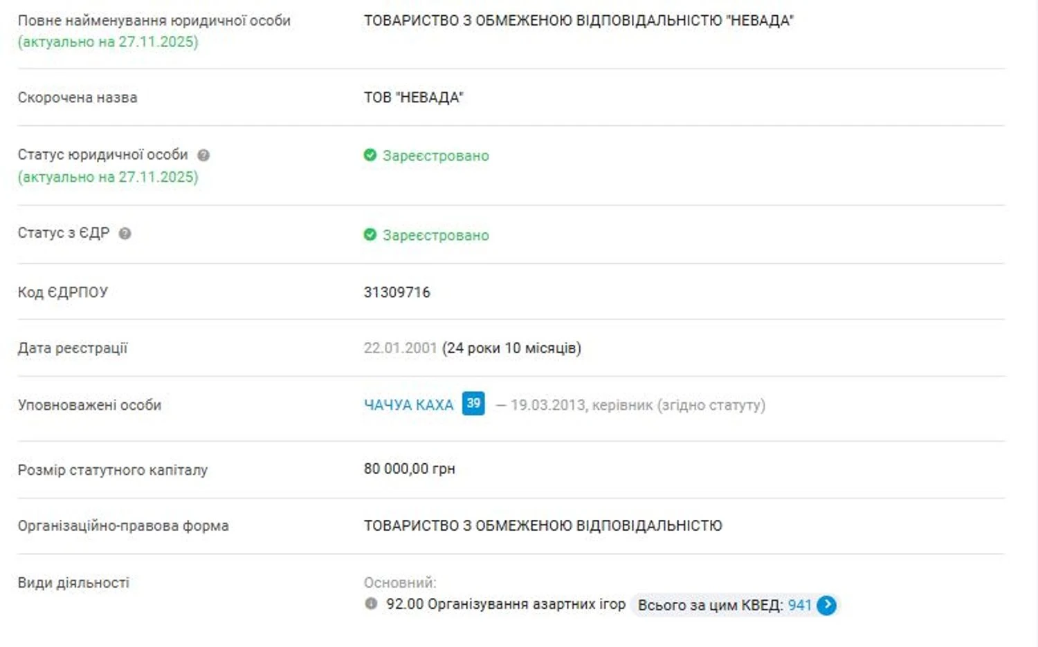 Несмотря на то, что эта фирма выступила учредителем Ассоциации деятелей игорного бизнеса, основной вид ее деятельности – производство медицинских и стоматологических инструментов и материалов. Также она имеет право производить оборудование специализированного назначения, производить и продавать мебель, заниматься компьютерным программированием и производить игры и игрушки. Руководителем и учредителем этой фирмы "Одрекс" в виде ООО является Руслан Мерзляков из Донецка.
