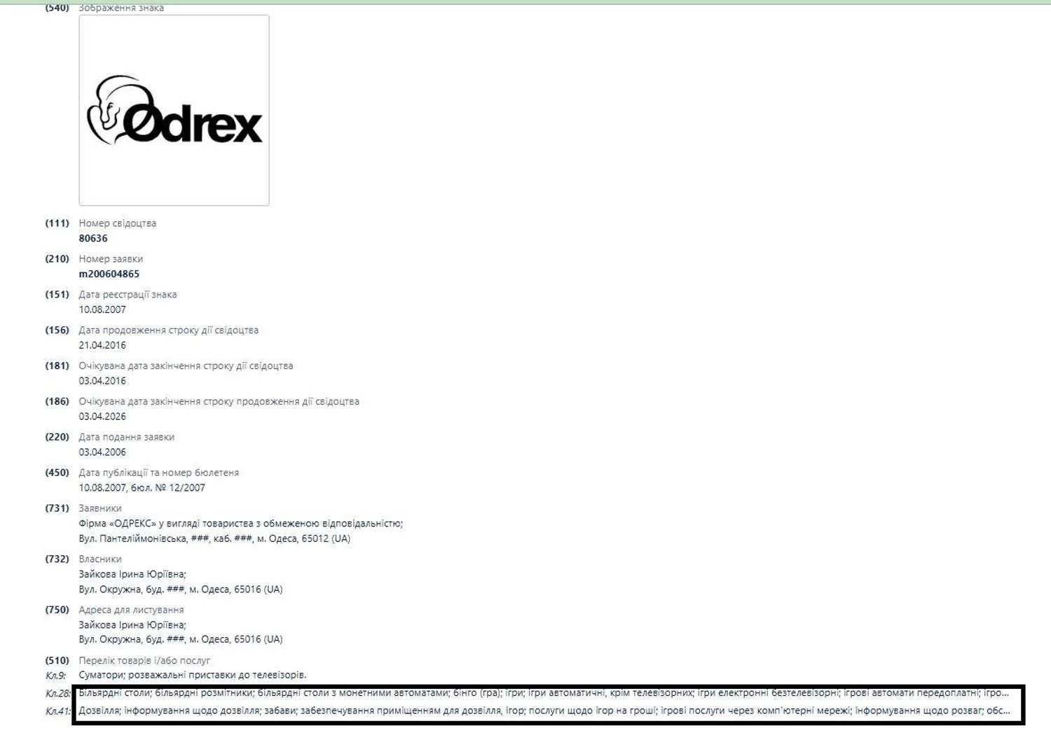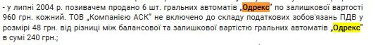 В этой же статье частично описывается и история "Одрекс" до того, как это название стала носить частная клиника. Указывается, что фирма "Одрекс" была открыта в Одессе еще в 1997 году и под видом производства игровых автоматов ремонтировала старые, завезенные из-за границы. Зарегистрирована эта компания была по адресу ул. Раскидайловская, дом 69/71 в Одессе, где, кстати, сейчас официально зарегистрированы все три фирмы, которые упоминались в истории об изменении лицензии.