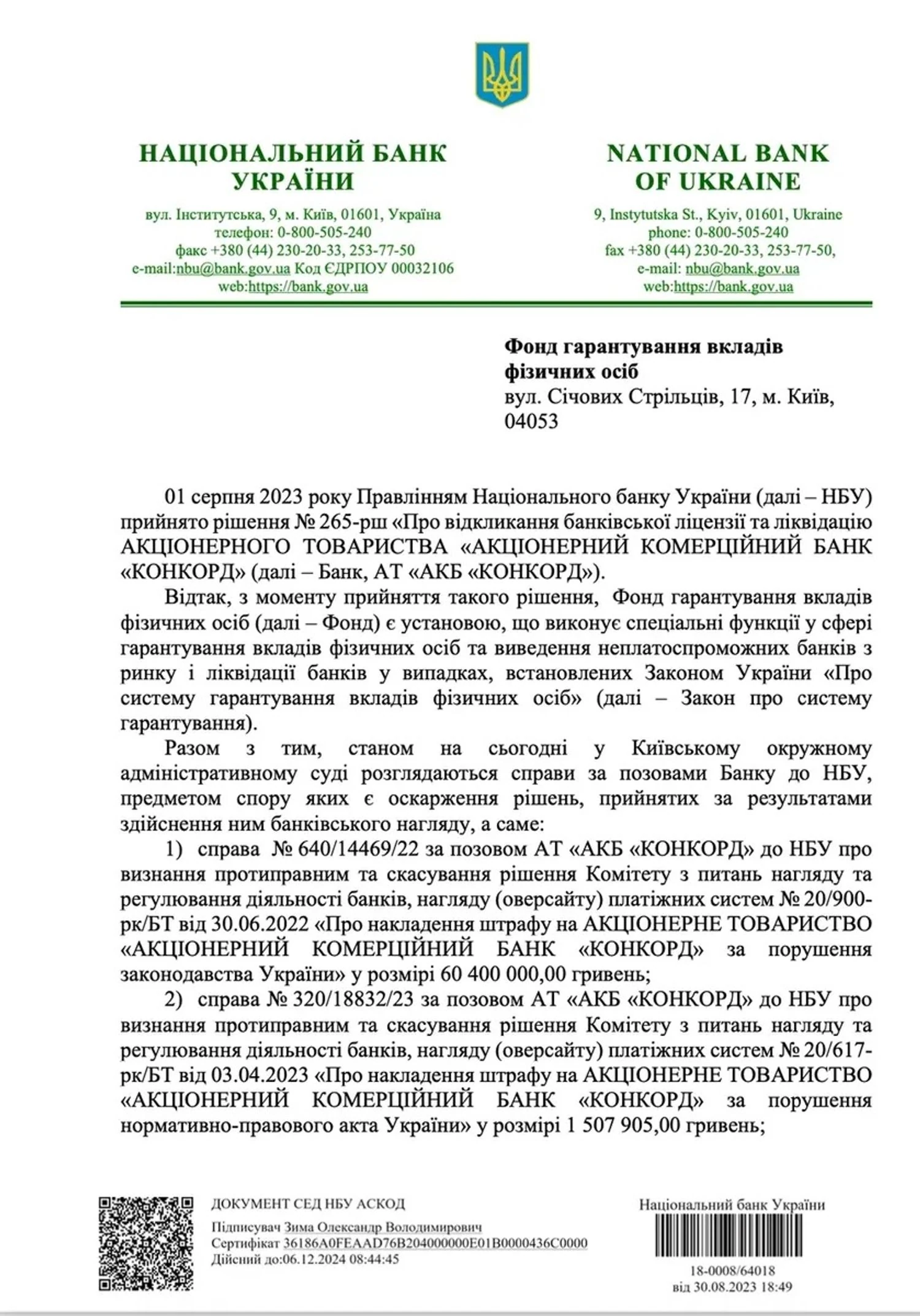 В частности, следователем не был проведен допрос всех возможных свидетелей в уголовном производстве, а также не была проведена выемка документов в Национальном банке Украины. Очевидно речь идет о самом письме за подписью Александра Зимы, которое он направлял Фонду гарантирования вкладов физических лиц, а также других документов, касающихся лишения "Конкорда" банковской лицензии.