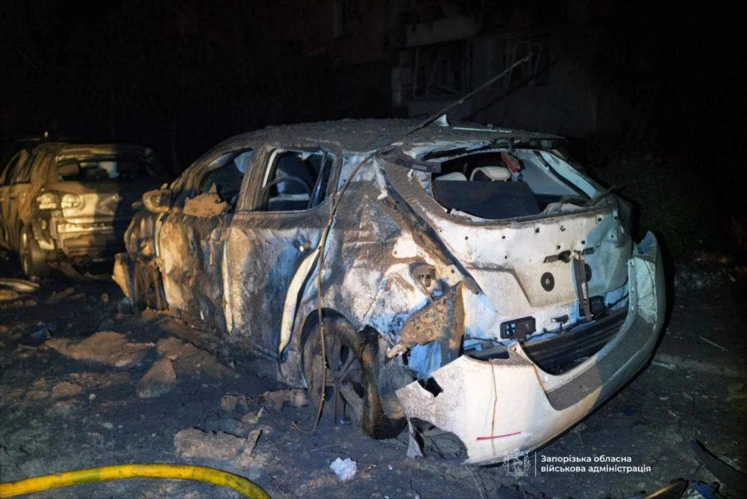 россияне ударили по двору многоэтажки в Запорожье: повреждено более 100 квартир и 20 авто