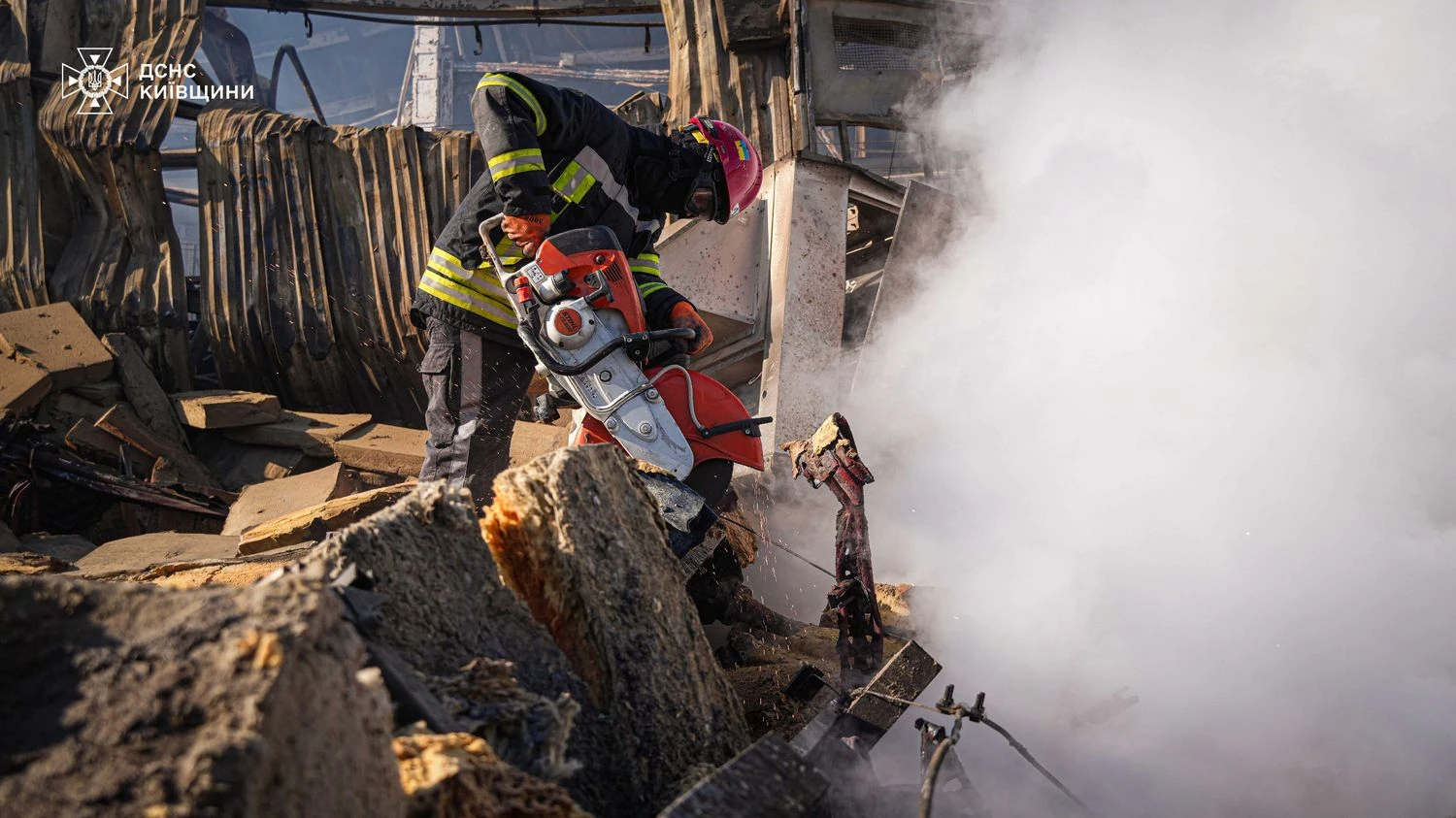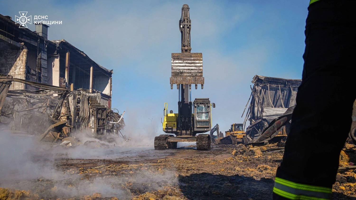 На Киевщине спасатели пятые сутки ликвидируют последствия вражеского обстрела промпредприятия