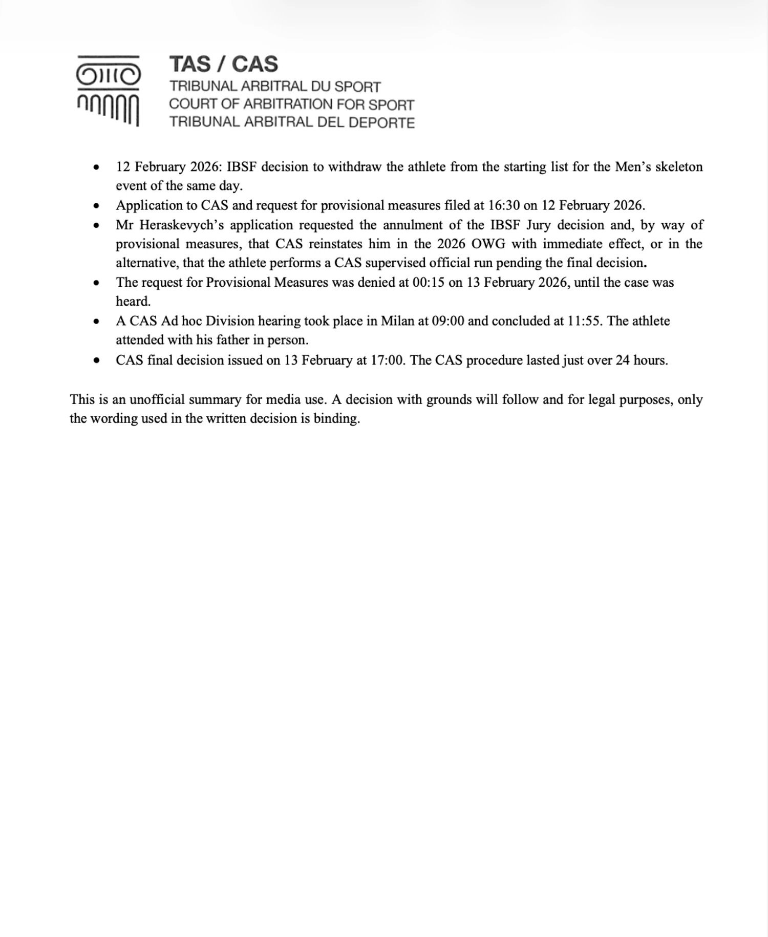 Судебный процесс Владислава Гераскевича против МОК и IBSF по быстрой процедуре завершился 13 февраля.