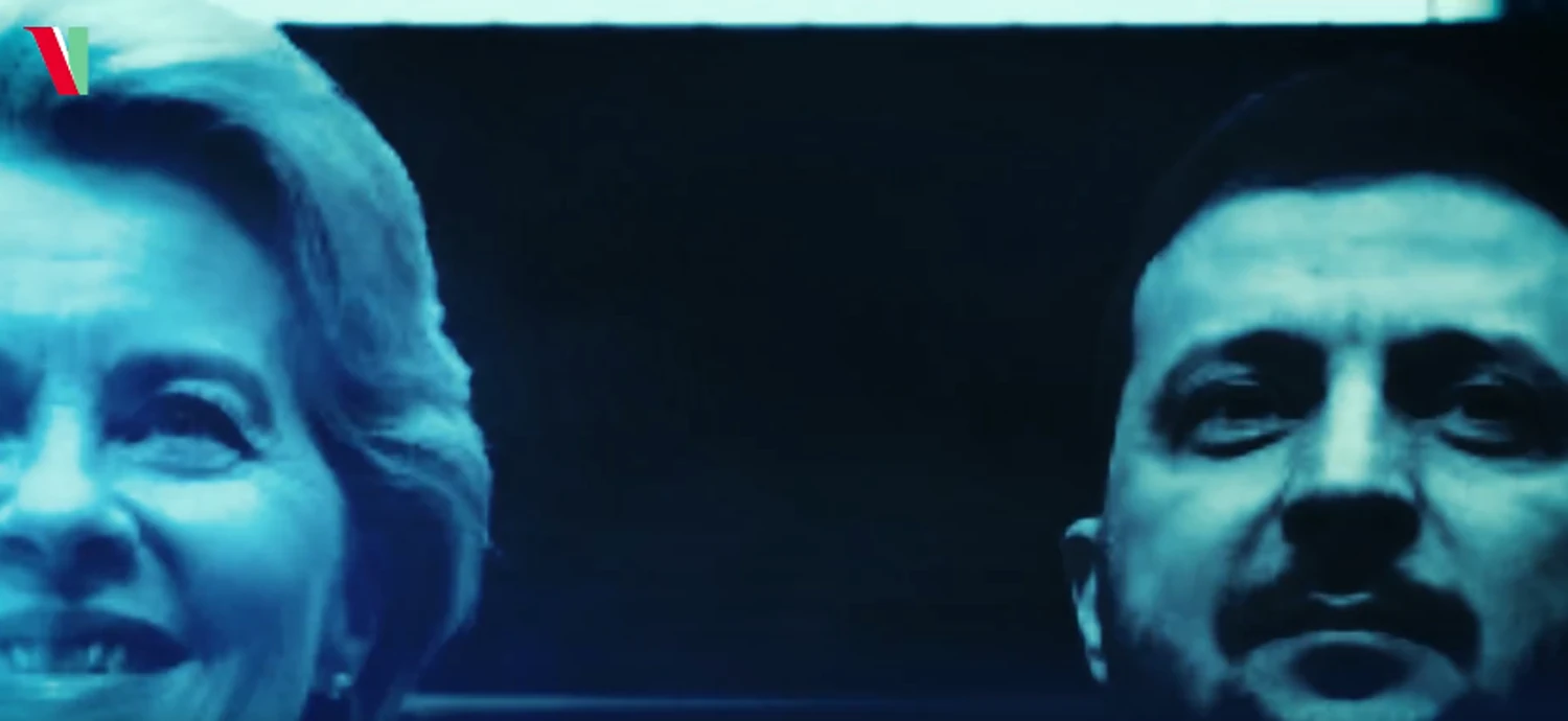 На видео изображен сам Орбан, а также есть кадры с Президентом Украины Владимиром Зеленским и председателем Еврокомиссии Урсулой фон дер Ляйен.