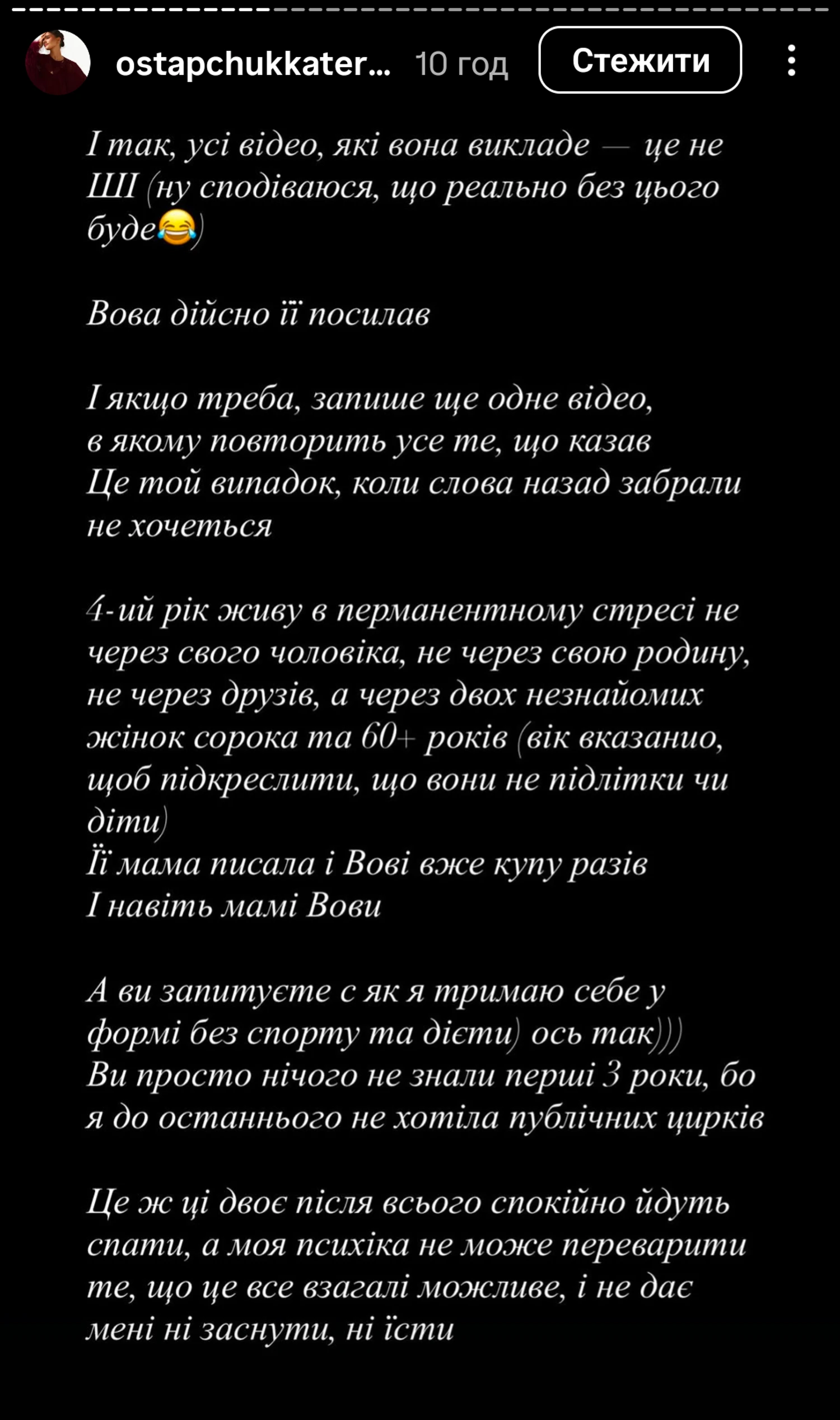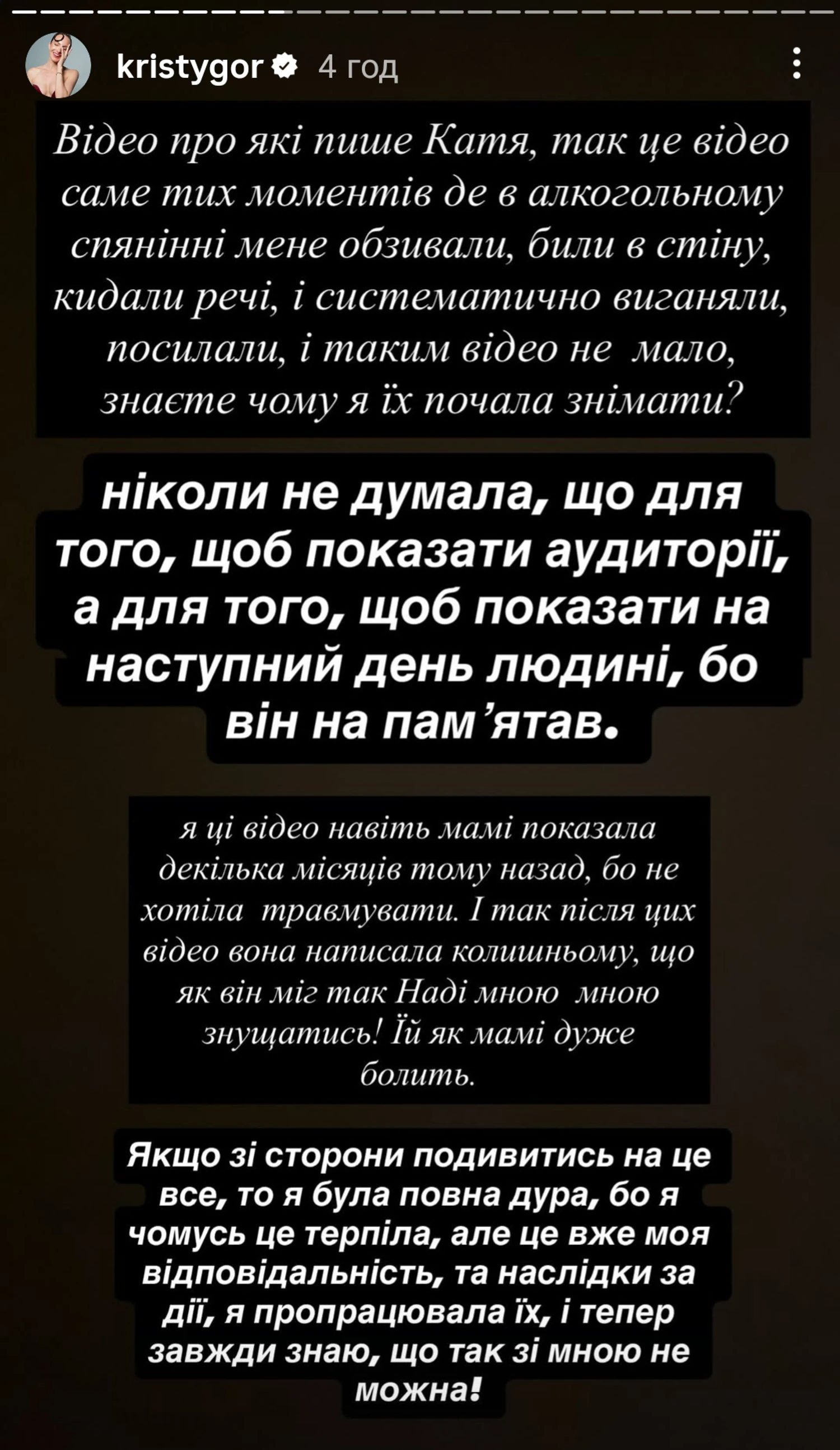 Также Кристина добавила, что терпела измены со стороны Владимира. Она добавила, что женщина была у Владимира, когда он был в браке с Горняк, но здесь речь не о Екатерине.