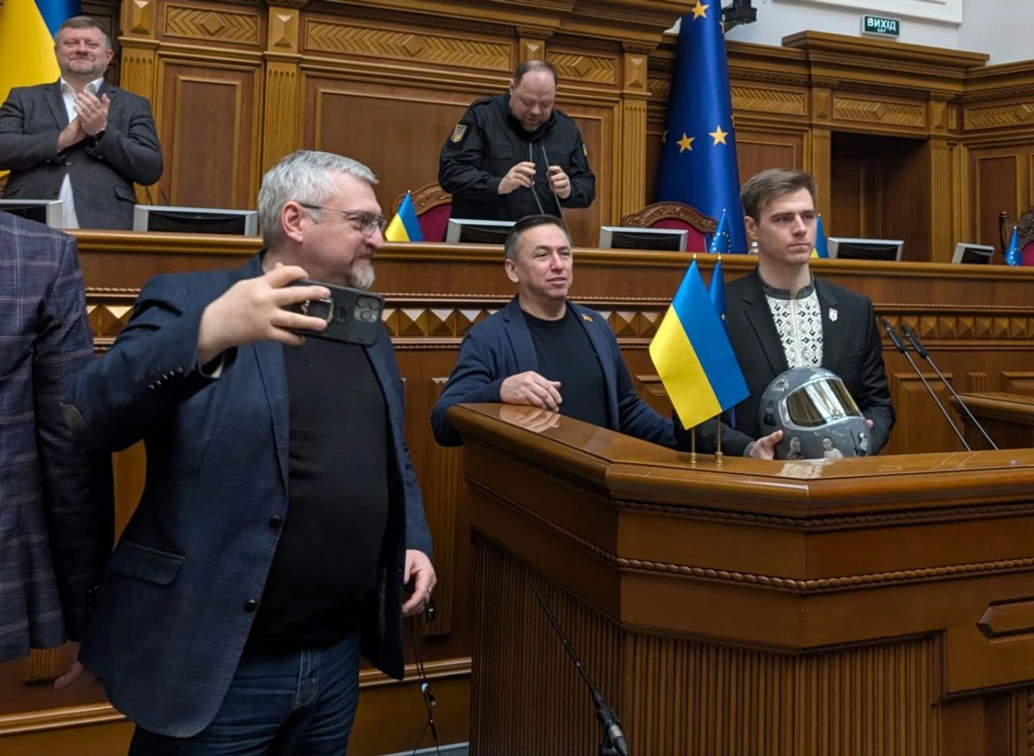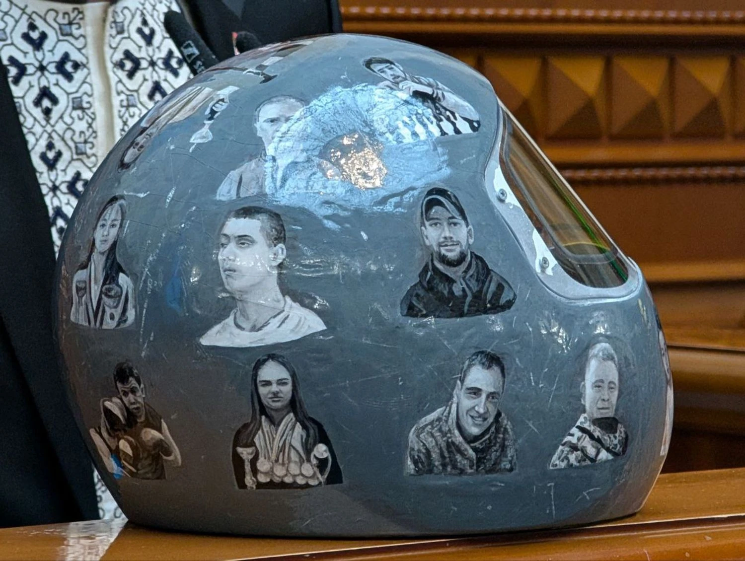 Сначала Гераскевич поблагодарил за приглашение, аплодисменты и поддержку. Параллельно в сети появились фото выступления спортсмена со шлемом с трибуны Верховной Рады.