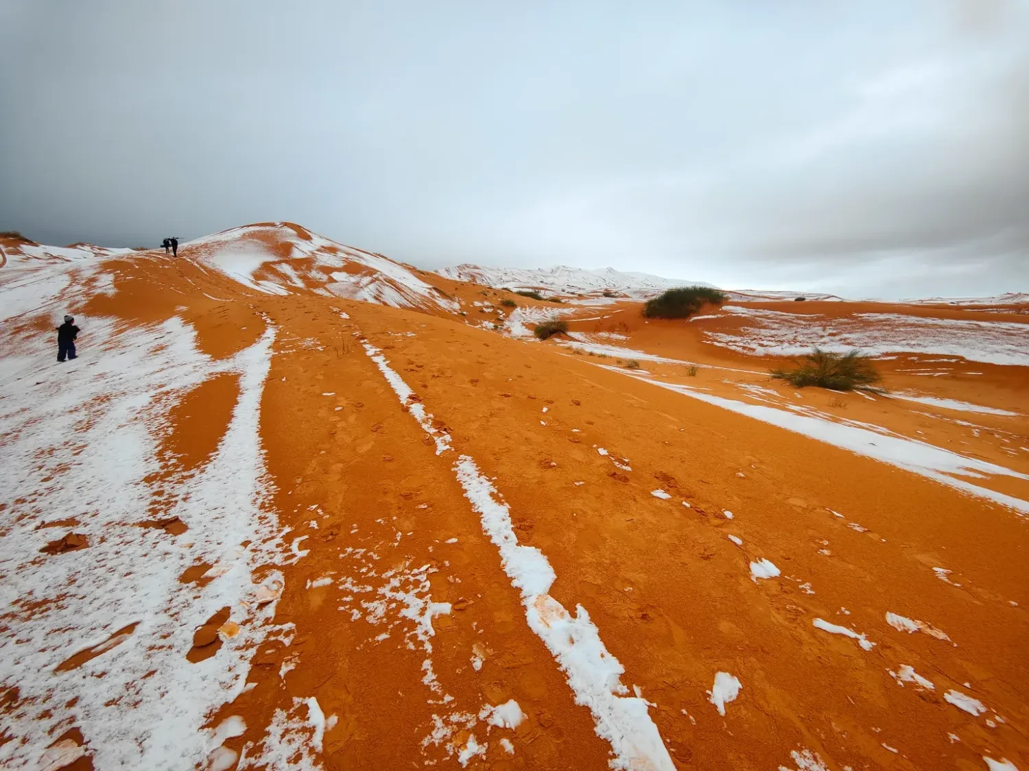 Напомним, что летом температура в этом регионе Сахары может превышать 50°C, поэтому снег здесь остается чрезвычайно редким природным явлением.