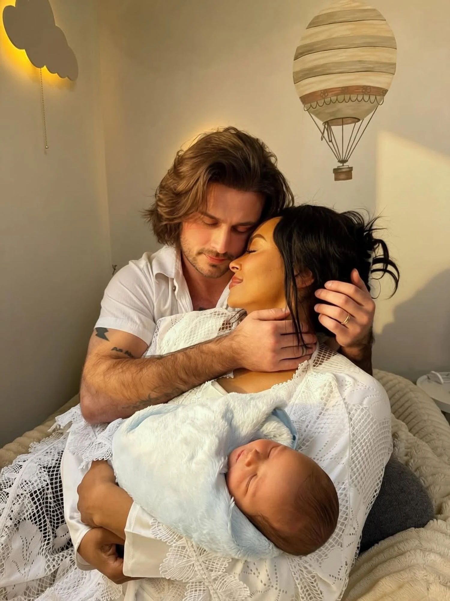 Вместе с новостью родители поделились и первыми фотографиями новорожденного. На одном из фото актриса держит малыша на руках, а ее муж нежно обнимает жену. На другом кадре видно, как младенец спокойно спит. Лицо ребенка супруги решили не скрывать.