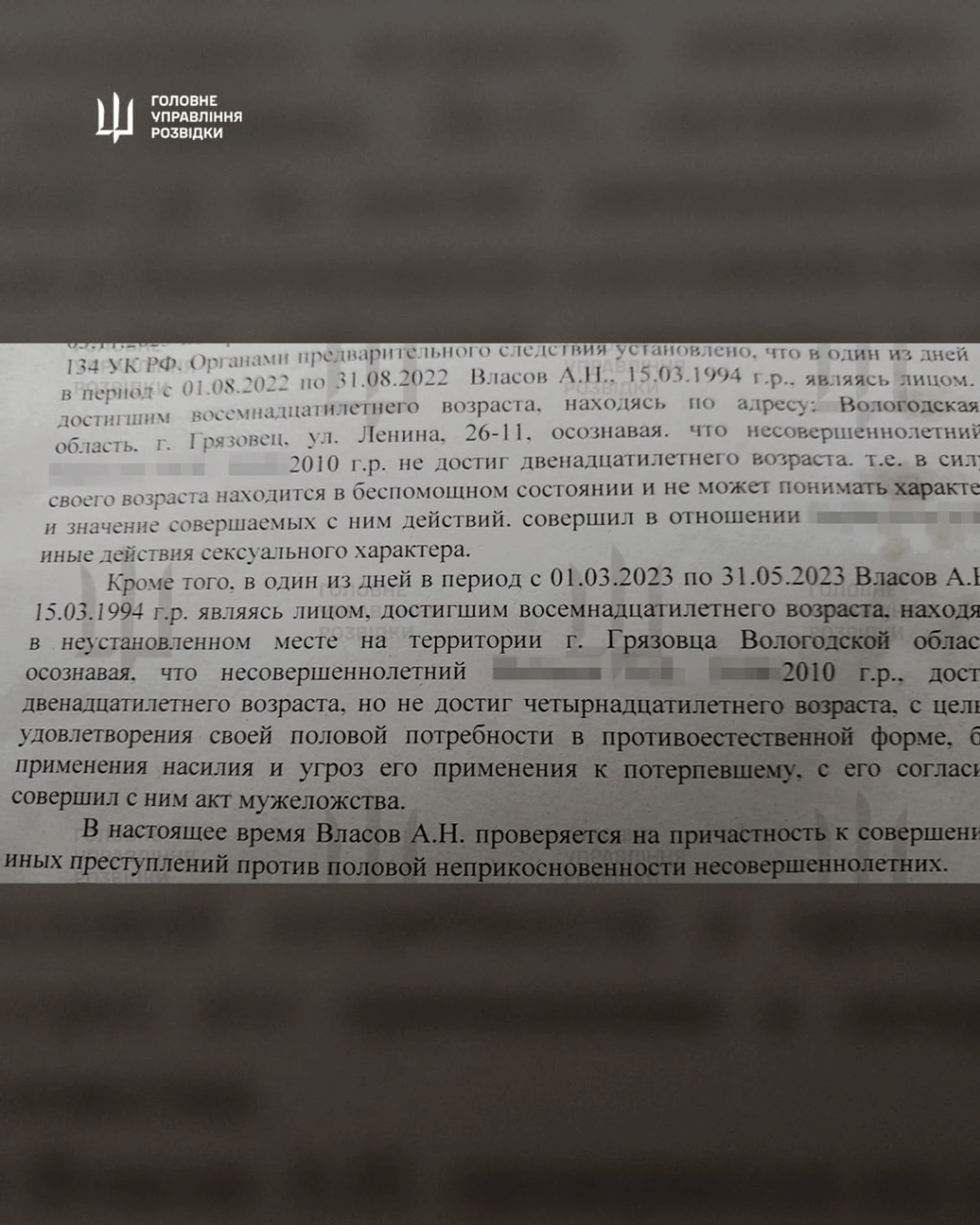 Он проходил службу в составе 9-го мотострелкового полка 18-й гвардейской мотострелковой дивизии 11-го армейского корпуса российских вооруженных сил. В 2022 и 2023 годах Власов совершил насильственные действия в отношении двух мальчиков 2010 года рождения, воспользовавшись их беспомощностью – жертвам на момент преступления было 11-12 лет.