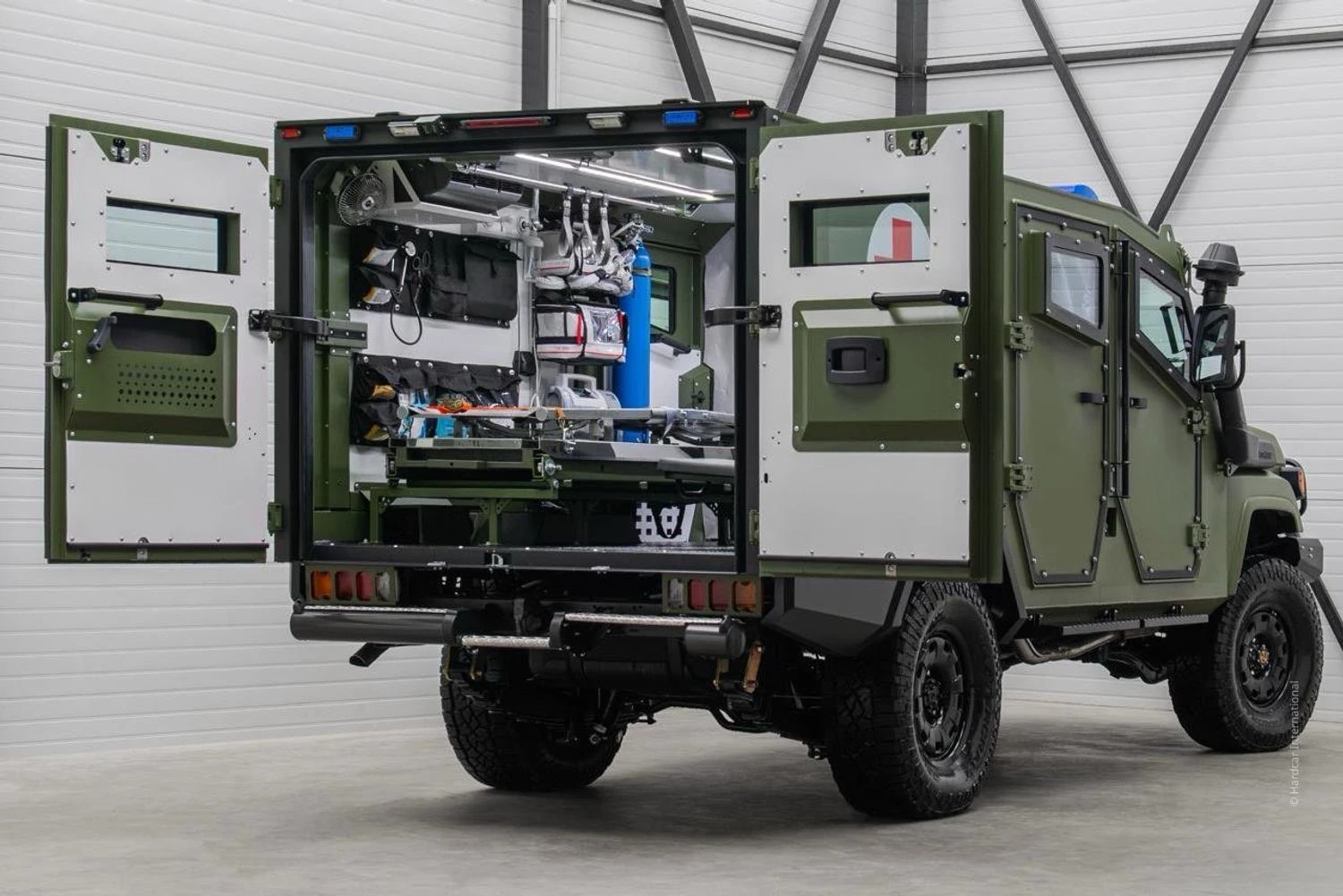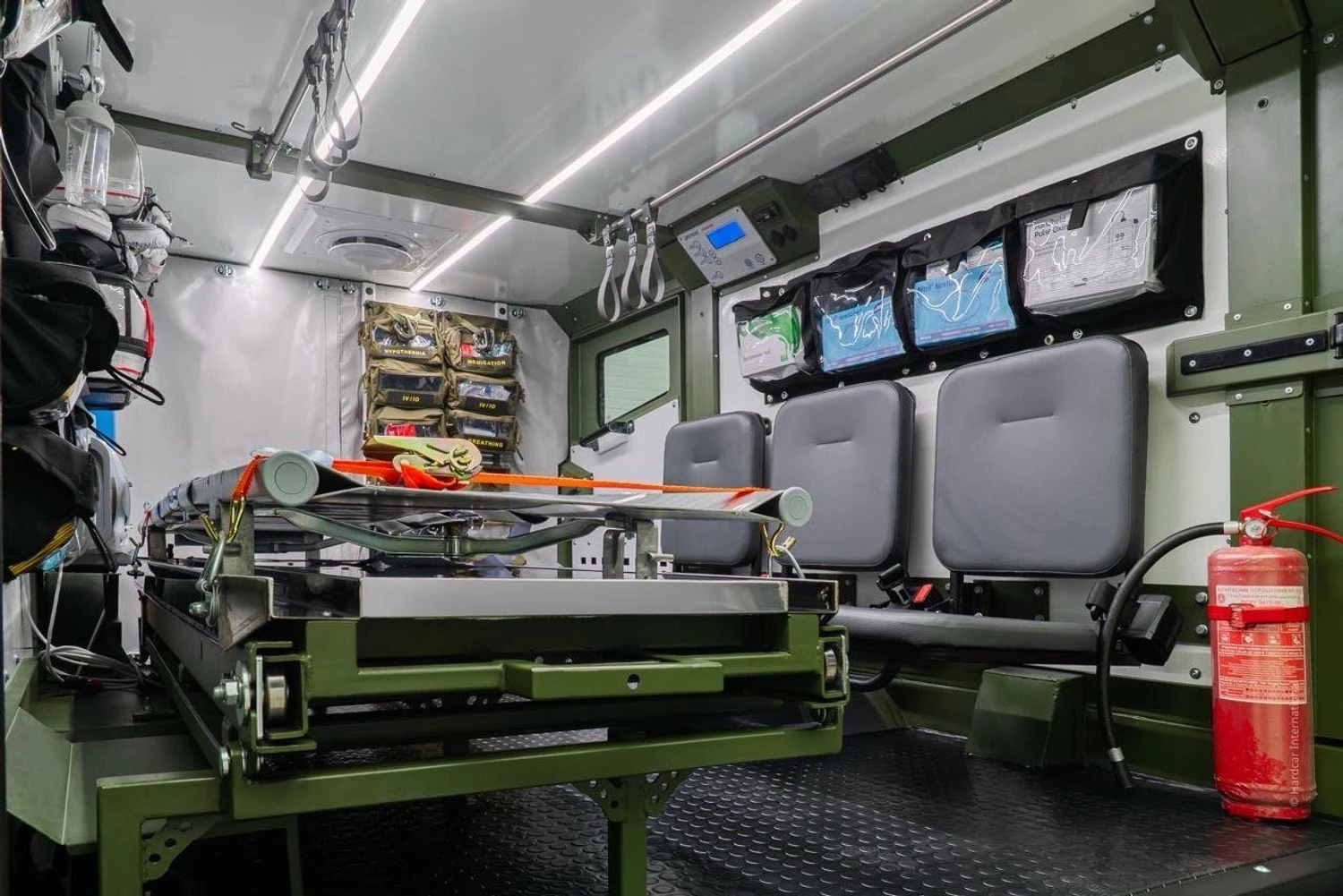 Бронирование соответствует уровню STANAG 4569 Level 1 и обеспечивает защиту от пуль калибра 5,56 мм, 5,45 мм и 7,62 мм. В медицинском отсеке предусмотрены крепления для носилок, дополнительные сиденья и ручки, а также камера заднего вида, дополнительное освещение и система питания с инвертором 220 В.