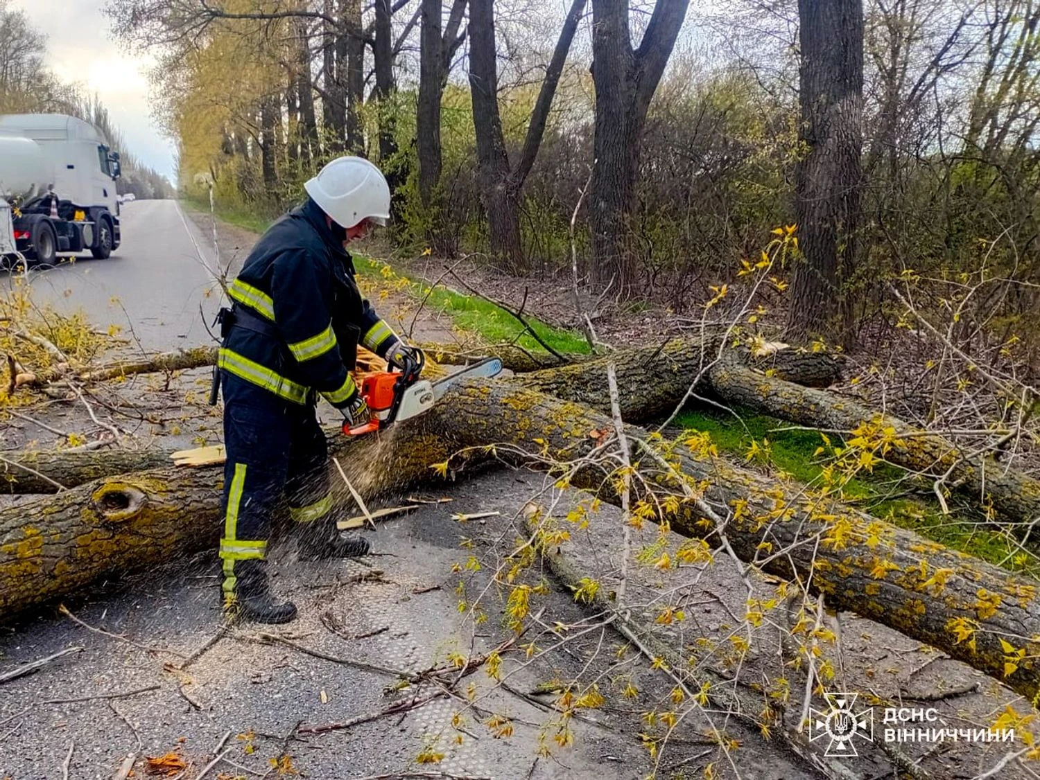 В то же время в Винницкой области спасатели расчищали автодороги от деревьев, разблокировали движение и обеспечили безопасный проезд транспорта.