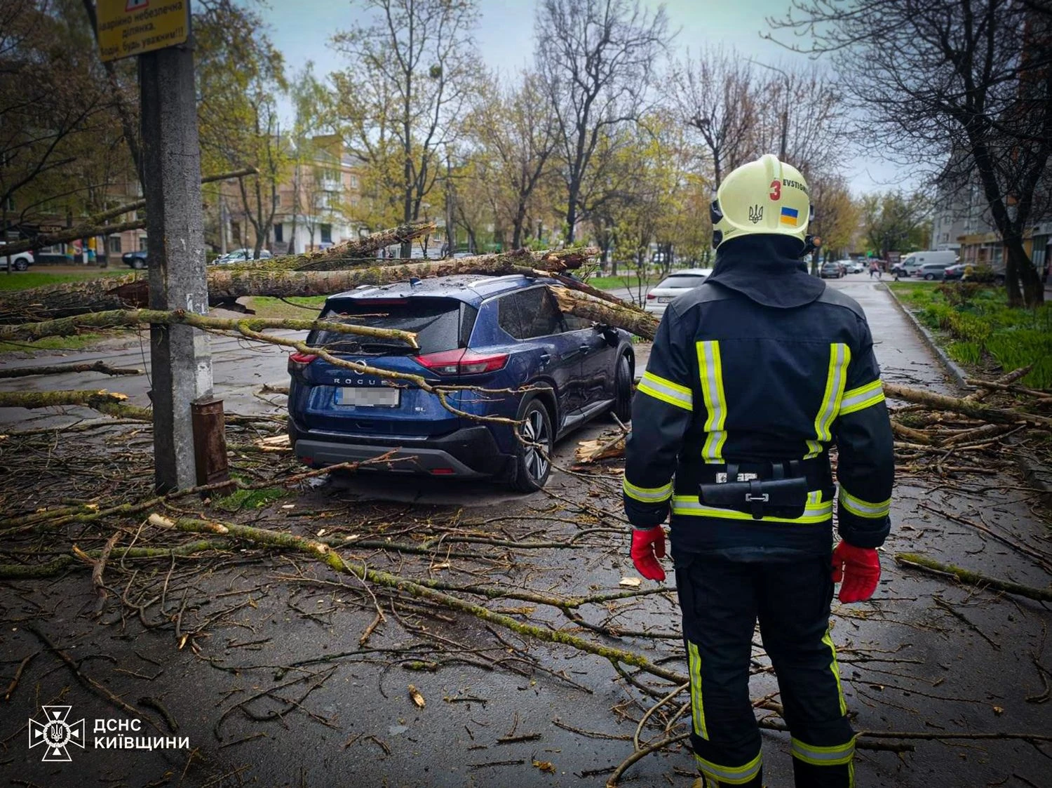 Последствия непогоды в Украине 23 апреля - деревья падают на авто и вызывают пожары