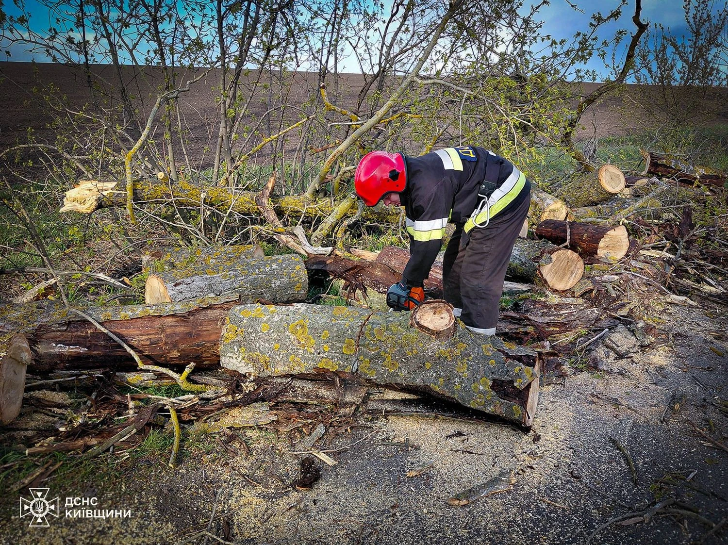 В Киевской области падение деревьев вызвало пожар и затруднило движение транспорта. Последствия происшествий ликвидированы.