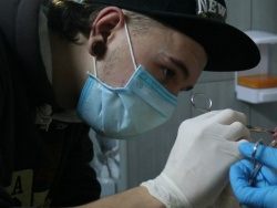 Первым человеком, на котором я испытал свое, на тот момент "мастерство", стала моя знакомая, которой я проколол уши, дальше продолжил делать проколы друзьям: языки, пупки, губы… А потом школьная жизнь закончилась и я переехал в Киев, где продолжил набираться опыта. Будучи на третьем курсе университета, я познакомился с товарищем, который в последствии устроил меня на работу мастером пирсинга.